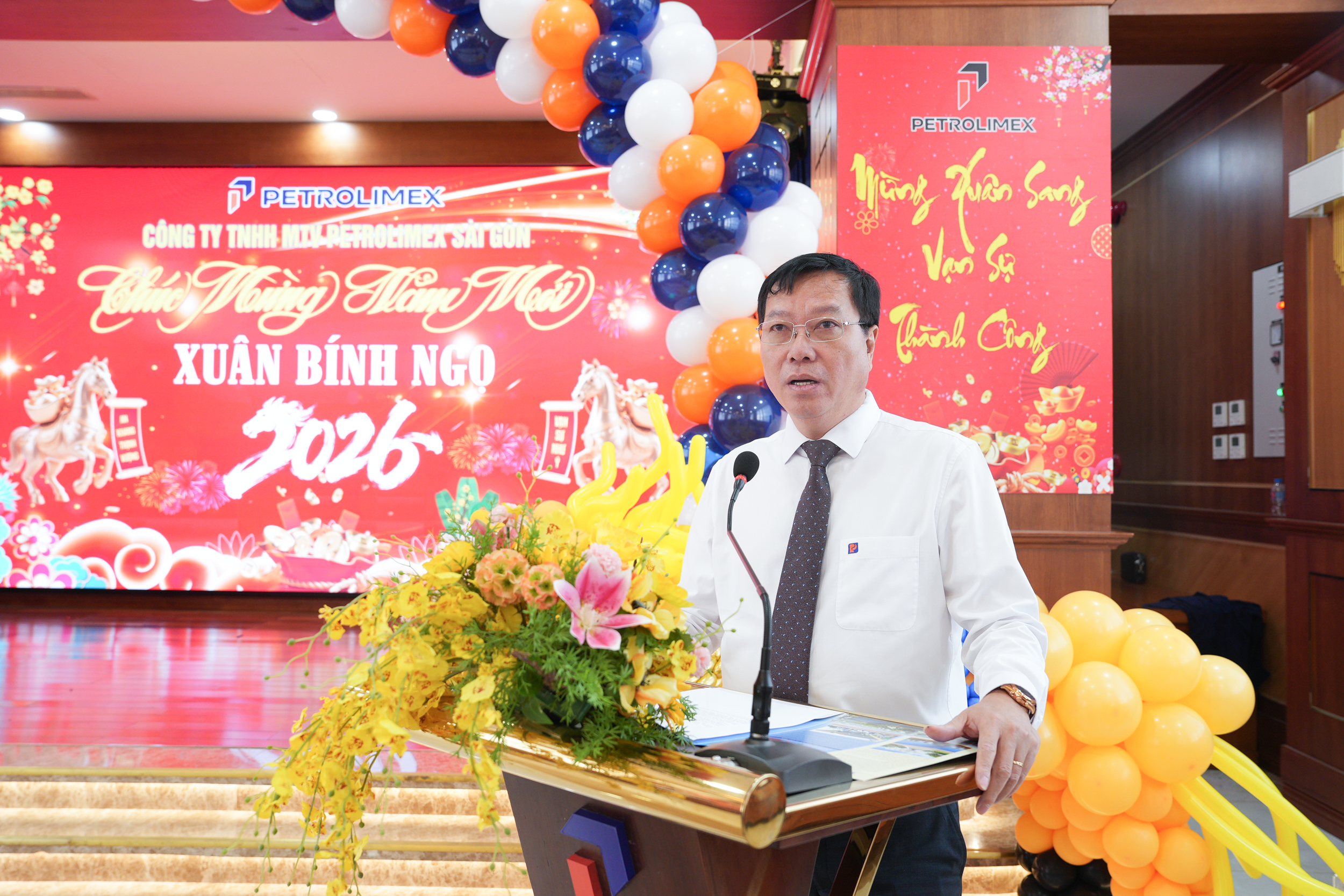 Chủ tịch Petrolimex Sài Gòn Võ Văn Tân gửi lời chúc mừng năm mới và kỳ vọng, với truyền thống đoàn kết, nỗ lực, quyết tâm của tập thể người lao động Công ty, Petrolimex Sài Gòn sẽ có một năm 2026 thành công rực rỡ